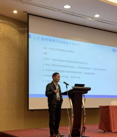 楊翼經(jīng)理代表紐邁在會(huì)上給大家?guī)硪环N全新的技術(shù)——快速循環(huán)變場(chǎng)核磁共振技術(shù),與常見的固定場(chǎng)強(qiáng)的核磁不同,該技術(shù)可實(shí)現(xiàn)在試驗(yàn)中場(chǎng)強(qiáng)的不斷變化,在能源領(lǐng)域研究潤(rùn)濕性等問題具有獨(dú)特的優(yōu)勢(shì)。