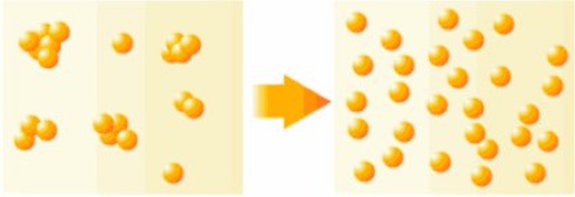 附聚體:指以點(diǎn)、角相接的原級(jí)粒子團(tuán)族或小顆粒在大顆粒上的附著,其總表面積比凝聚體大,但小于單個(gè)粒子組成之和,再分散比較容易。凝聚體和附聚體也稱(chēng)二次粒子。