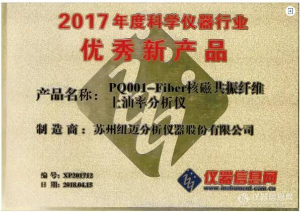 核磁共振纖維上油率分析儀榮獲2017年度優(yōu)秀新品