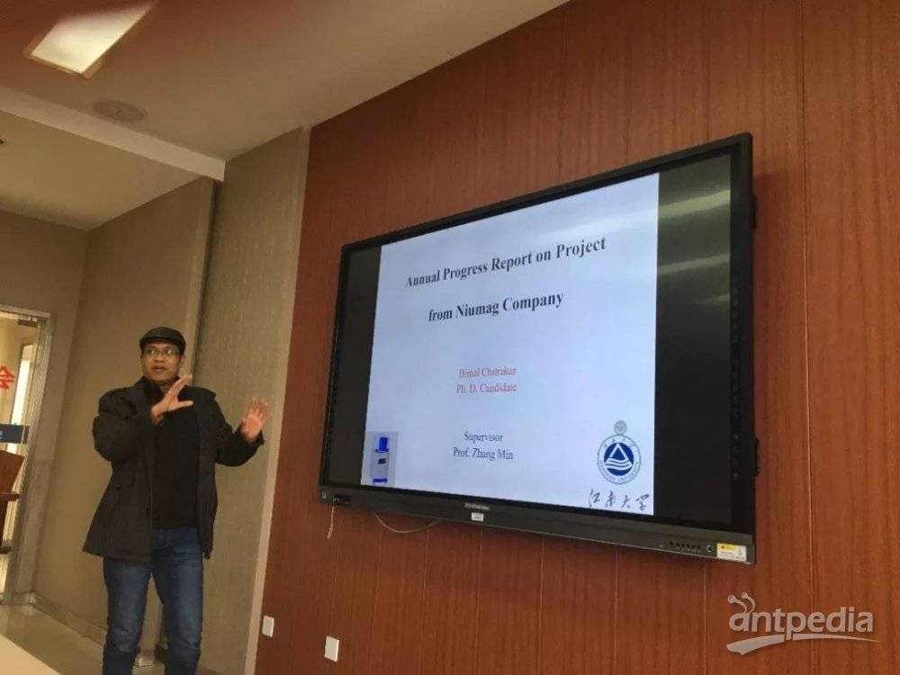 孫卿博士以“基于低場核磁的智能檢測干燥技術與設備研發(fā)”為主題,創(chuàng)建了食品干燥這一過程中各環(huán)節(jié)水分變化的神經(jīng)網(wǎng)絡優(yōu)化模型,著眼于數(shù)據(jù)優(yōu)化與設備創(chuàng)新,曲徑通幽。吳曉菲博士以“低場核磁監(jiān)測上海青莖稈在紅外常壓干燥過程中的水分狀態(tài)及其收縮率的變化”為主題,通過干燥過程中的水分變化,剖析了這一過程中含水率、收縮率以及水分活度的變化與核磁參數(shù)的相關性,并基于低場核磁參數(shù)建立了PLSR模型以預測干燥過程中各項指標的變化節(jié)點,擘肌分理,不遺毫發(fā)。李琳琳博士以“基于低場核磁共振技術的山藥介電特性智能檢測方法的研究”為主題,通過分析食品干燥過程中物料的介電特性,發(fā)現(xiàn)相關關系,分析數(shù)據(jù),并建立關系模型,由此及彼,遙相應和。孫亞男博士基于LF-NMR智能檢測,展現(xiàn)了姜干燥過程中的風味變化,探究生活細微之處,嚴謹之余不乏妙語橫生。Bimal Chitrakar博士則以“Annual Progress Report on Project from Niumag Company”為主題,基于LF-NMR數(shù)據(jù)中的T2弛豫時間分析展示了蘋果、番茄等六種不同水果的水分活度狀態(tài),獨出機杼,游刃有余。