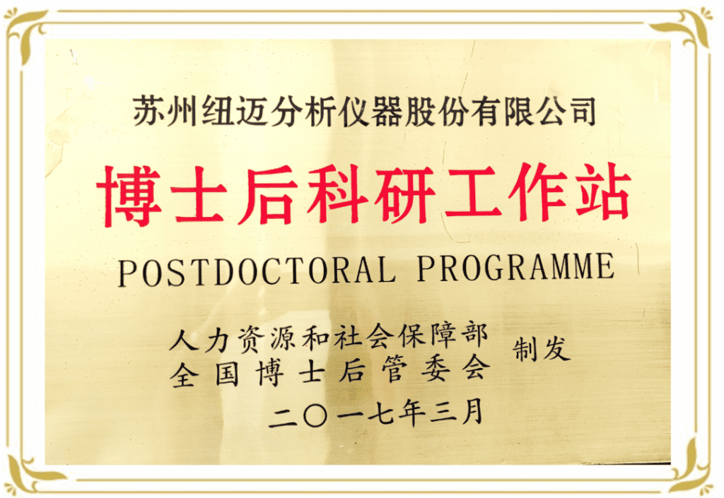 蘇州紐邁分析儀器股份有限公司自2003年成立以來(lái),一貫致力于“低場(chǎng)核磁共振”儀器的研發(fā)、生產(chǎn)與技術(shù)應(yīng)用的推廣,產(chǎn)品應(yīng)用于農(nóng)業(yè)、食品、能源勘探、高分子材料和生命科學(xué)等行業(yè)領(lǐng)域。該公司發(fā)展迅猛,目前已經(jīng)成為“低場(chǎng)核磁共振技術(shù)”這一新興分析儀器產(chǎn)業(yè)最具發(fā)展活力和潛力的高新企業(yè)。?紐邁分析的創(chuàng)新實(shí)踐基地博士后工作站也發(fā)展迅速,?紐邁分析博士后科研工作站于2014年11月經(jīng)江蘇省人力資源部和生活保障部批準(zhǔn)成立。2017年4月,該博士后科研工作站經(jīng)國(guó)家人力資源和社會(huì)勞動(dòng)保障部批準(zhǔn)升格為國(guó)家級(jí)博士后科研工作站,并于同年7月正式授牌。