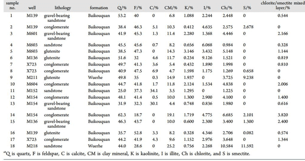 表1 砂礫巖樣本巖性及主要礦物質(zhì)含量