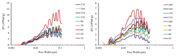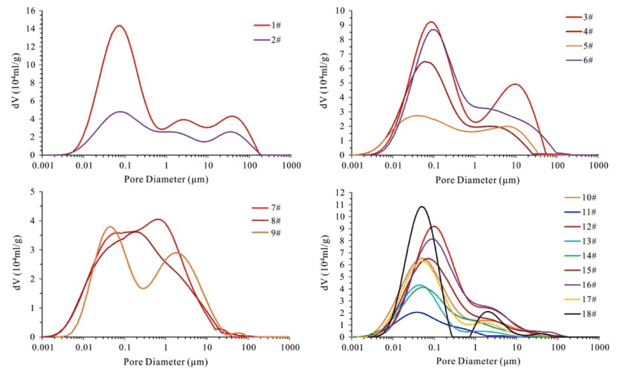 本文對18組砂礫巖樣本進行了全尺度孔徑分布表征和可動油分布和控制因素的定量化研究。有以下成果:
