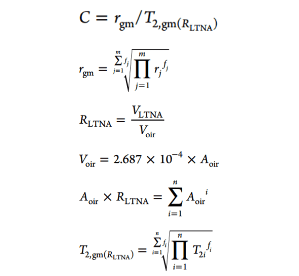 其中,rgm為DFT模型孔徑分布的加權幾何平均值;RLTNA為對應Voir的低溫氮氣吸附實驗表征的孔隙體積占比;Voir為Soir狀態(tài)的NMR孔體積;Aoir為Soir狀態(tài)下的NMR累積信號幅值;T2gm(RLTNA)為對應RLTNA占比的Soir狀態(tài)T2譜的T2加權幾何平均。