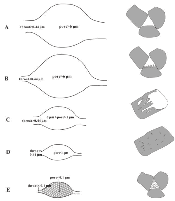 圖9 砂礫巖中發(fā)育的五種主要的孔喉結構