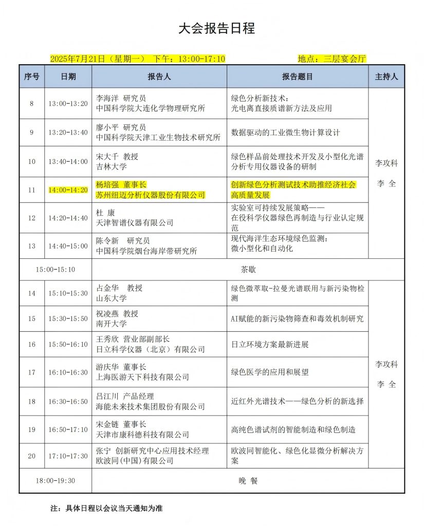 在這場盛會中,紐邁分析董事長楊培強將帶來一場主題報告——《創(chuàng)新綠色分析測試技術(shù)助推經(jīng)濟社會高質(zhì)量發(fā)展》。楊董將結(jié)合紐邁在低場核磁共振(NMR)技術(shù)領(lǐng)域的深厚積累與綠色創(chuàng)新實踐,分享前沿洞見。
