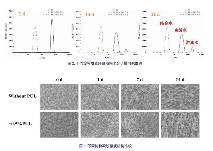 PUL的添加有效地保持了淀粉凝膠的完整網(wǎng)絡(luò)結(jié)構(gòu),因而提高了持水性和凝膠冷藏穩(wěn)定性。