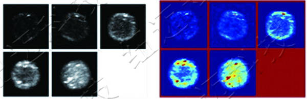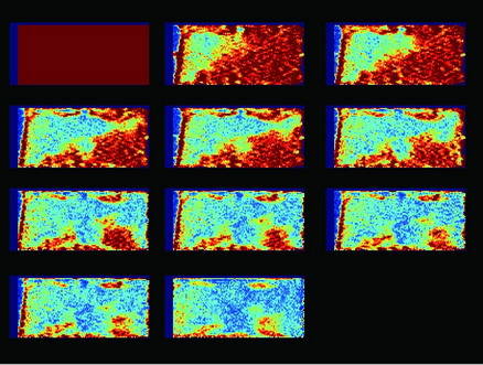 上圖中亮的信號(hào)代表水分,隨著融化的進(jìn)行,信號(hào)逐漸從外部向內(nèi)部發(fā)展,最后完全融化。