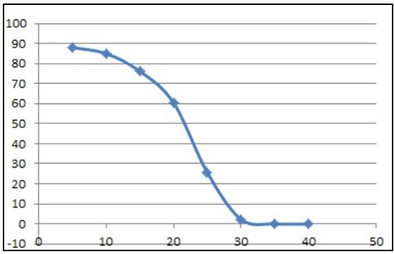 由于來自固體的NMR信號衰減比來自液體的NMR信號衰減快得多。因此,可以在FID(圖1)上的兩個點進行測量,分別在“t1=11us”點進行測量,該點對應(yīng)固體和液體信號的總和A1。在另一個點“t2=70us”進行測量,該點固體信號已經(jīng)衰減到0,測試到的信號A2僅為液體信號。通過計算,即可得到樣品在對應(yīng)溫度下的固體脂肪含量。對多個溫度進行測試,即可得到溫度與固體脂肪的變化曲線。