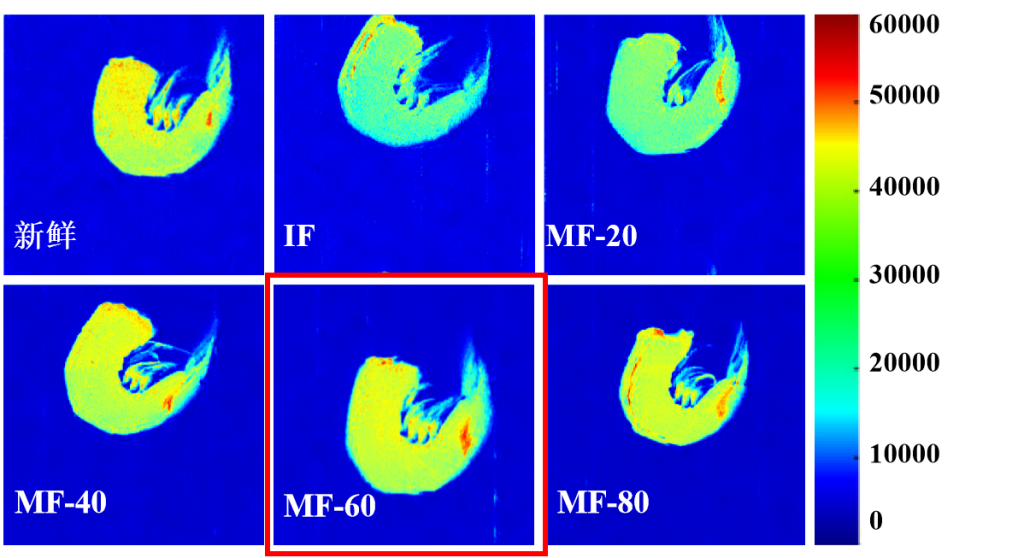 圖4:不同處理的冷凍蝦的MRI圖像,新鮮蝦和不同處理的冷凍蝦的變化