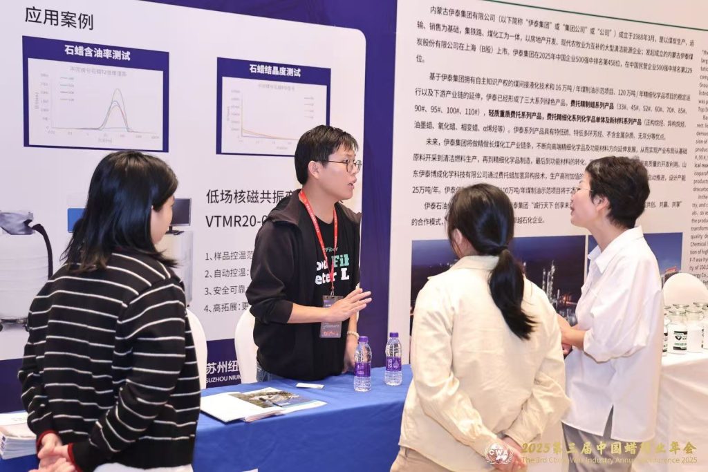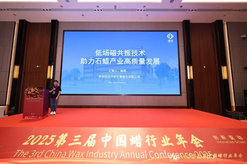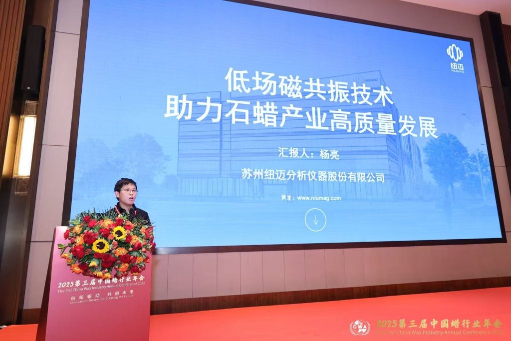 本次年會聚焦蠟行業(yè)高端化、國際化發(fā)展路徑及產(chǎn)業(yè)升級中的關(guān)鍵挑戰(zhàn),吸引了眾多行業(yè)專家與企業(yè)代表參與。蘇州紐邁分析儀器股份有限公司攜低場核磁共振技術(shù)參加本次會議,公司產(chǎn)品經(jīng)理楊亮在會議上作了《低場磁共振技術(shù)助力石蠟產(chǎn)業(yè)高質(zhì)量發(fā)展》 的專題報告。