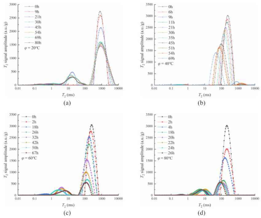 圖二 不同溫度下T2分布