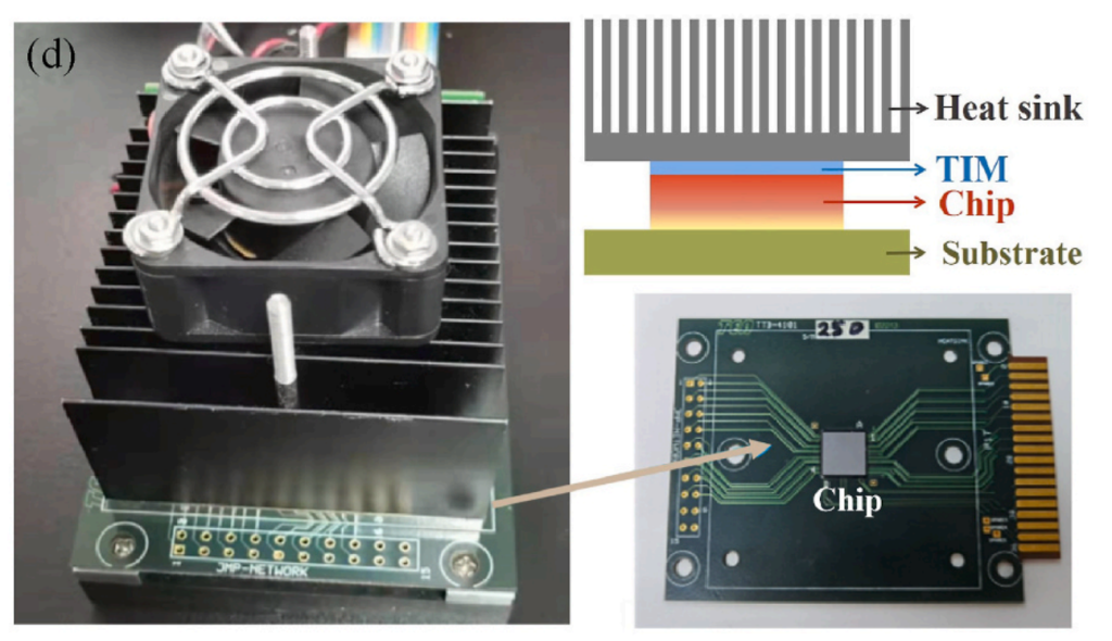 隨著芯片朝著微型化和集成化方向發(fā)展,熱管理對于進(jìn)一步提高電子設(shè)備性能變得極為重要。由于芯片和散熱器之間的表面粗糙度不一致,它們之間的空氣間隙會導(dǎo)致巨大的熱阻。熱界面材料(TIMs)用于填充芯片和散熱器之間的間隙以降低熱阻(圖1)。通常,在實(shí)際操作中使用的TIMs需要具有較高的熱導(dǎo)率。與金屬