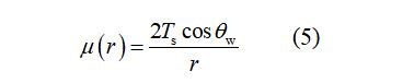 在非飽和狀態(tài)下,吸附水賦存的孔隙半徑r與基質(zhì)勢(shì)μ(r)之間的關(guān)系可以通過廣義的Young-Laplace方程來描述: