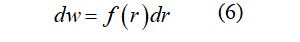 將土體孔隙想象為一束具有不同孔徑的圓柱形管道,不同大小的孔隙中賦存的孔隙水體積不同。將每克干土中的孔隙水體積定義為孔隙水分布函數(shù)f(r)。函數(shù)f(r)dr表示孔徑在[r, r+dr]范圍內(nèi)的孔隙水體積。假設(shè)孔隙間是連通的,質(zhì)量含水率w與孔隙水分布函數(shù)之間的微分關(guān)系可以通過公式(6)表示: