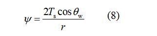 式中,Ts為表面張力,在試驗(yàn)環(huán)境為20 ℃的條件下,其值等于72.75 mN/m;θw為固?液接觸角,為了簡(jiǎn)單起見,通常取0 °。