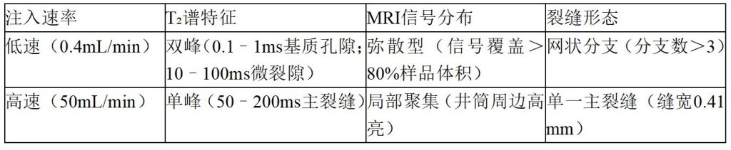 低速損傷均勻化:流體通過微裂隙網(wǎng)絡(luò)擴(kuò)散(MRI顯示徑向滲透范圍>4 mm),誘發(fā)多分支裂縫。