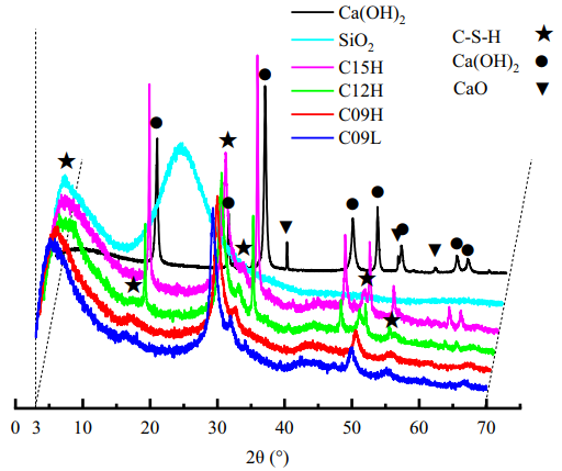 通過CH和非晶態(tài)SiO2粉末在室溫下的反應(yīng),制備了三種不同的C-S-H樣品,理論Ca/Si比為0.9、1.2、1.5。水與固體的比率(W/S比率)被固定為0.8。