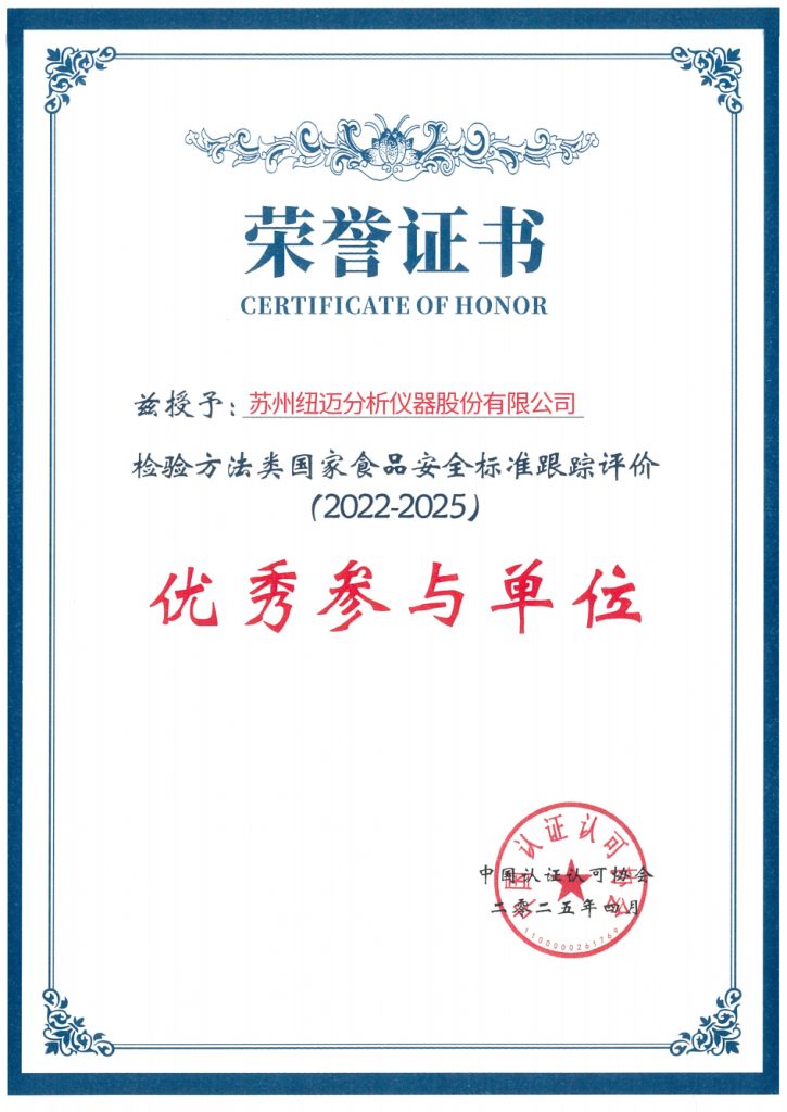 此次榮獲“優(yōu)秀參與單位”稱號,對紐邁分析而言是榮譽更是責任。未來,紐邁將持續(xù)加大技術研發(fā)與應用推廣投入,不斷提升產(chǎn)品與服務質(zhì)量,為保障國家食品安全、推動行業(yè)發(fā)展貢獻更多力量。