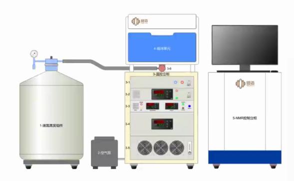 原位變溫低場核磁共振系統是在常規(guī)低場核磁共振系統上加配了變溫探頭、控溫硬件以及控溫軟件。系統樣機如下圖: